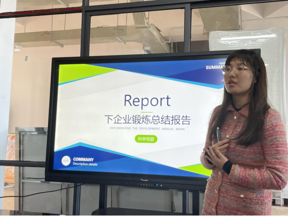 随后,孙辛悦容老师从辅导员身份出发,结合自身职责,对本次企业锻炼进行了心得分享。她结合企业对员工的能力需求,向与会教师强调了专业理论知识、实操动手能力的重要性。此外,汇总了公司在岗员工希望企业可以提供更高的晋升空间,开展更加系统、高质量的业务培训等意见。针对员工走出去动力不足、工作能力较弱等问题,她希望在今后的员工管理工作中,正确引导员工树立正确的就业观,充分发扬“三光荣”精神。
