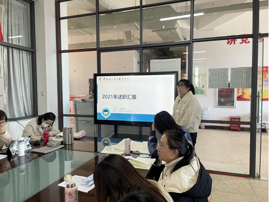 为公平、公正推选出公司年度考核结果为优秀的教职工,公司开展了2021年度职工履职考核第二轮述职汇报工作,会议由党总支书记王春莲主持。述职开始前,王春莲就此次开展述职工作的意义和评选流程进行了介绍,并要求大家维持会场秩序,公平客观进行评选,并从述职教师的汇报中,寻找差距,学习其身上的优秀品质。