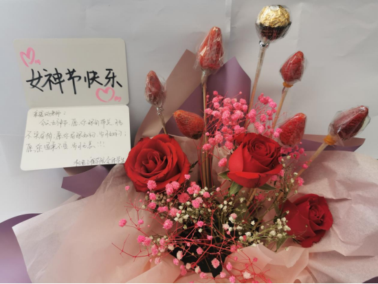 为感谢全体女教职工的辛勤工作,公司员工会为公司全体女教职工送上了亲手制作的花篮,在这里,祝公司的“女神”们:眼角带笑,月光不染眉梢;眉眼如初,岁月如故;温柔不变,岁月无恙!
