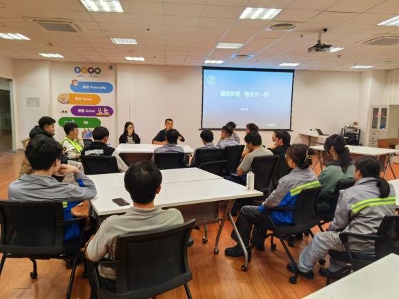 对于有不同发展意愿的员工,如专升本、应征入伍、就业等,熊国栋副经理和许康洁老师进行了细心指导,提醒大家要早做规划,未雨绸缪,结合专业特点与就业形势,帮助大家更好地规划未来职业道路。同学们也积极回应这份关怀,反馈了诸如饮食不习惯、工作强度大等问题。对此,两位老师也将员工的诉求与建议转达给企业。
