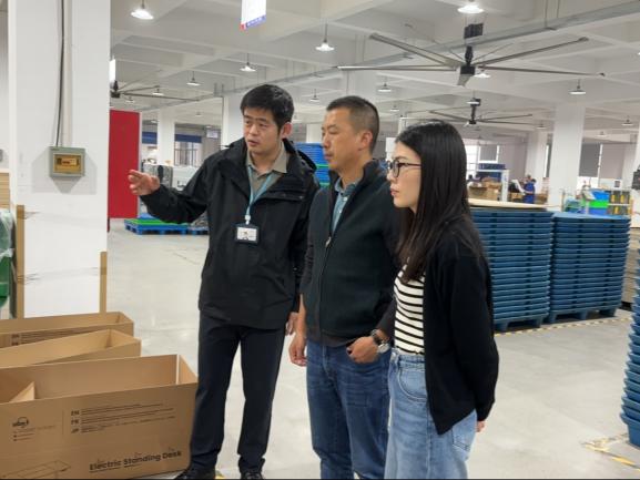 在南通市九正人体工学股份有限公司,两位老师参观了研发、组装、调试、包装等车间,整个生产链条完整呈现,企业方介绍了显示器支架、升降桌等主打产品,并着重阐述了与公司专业对口的岗位情况及技能要求。
