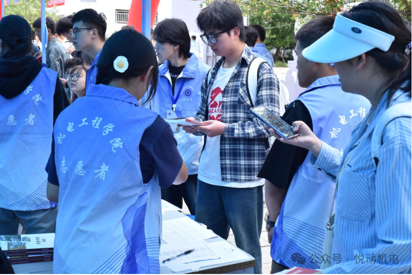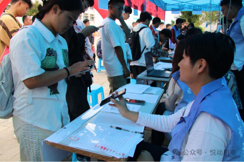 迎新现场,身着统一志愿服的员工志愿者是最亮眼的“风景线”。