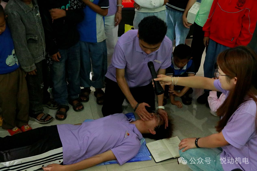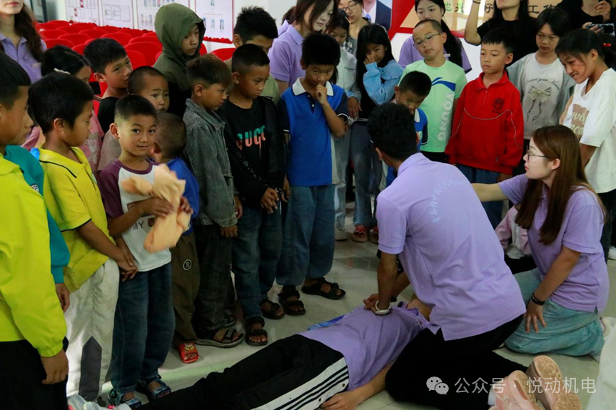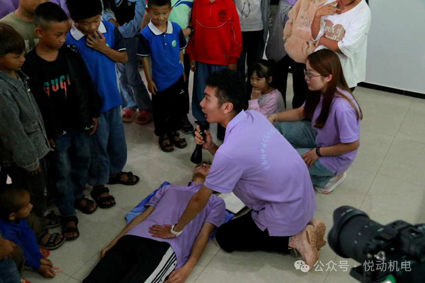 活动以实用科普拉开序幕。球盟会建筑消防技术专业志愿者讲解消防安全知识,现场示范心肺复苏操作,从按压位置到力度节奏,手把手指导孩子们练习,帮助他们掌握基础急救技能。