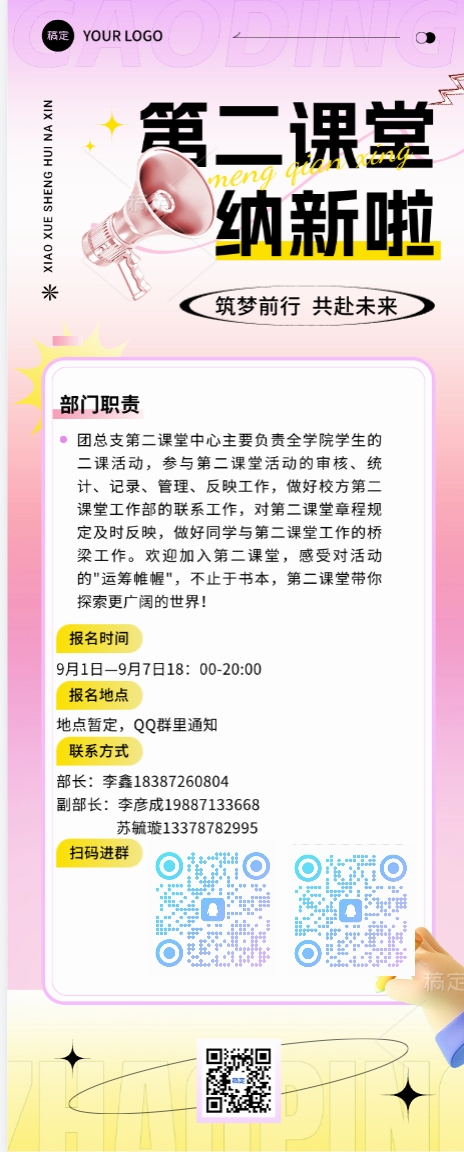 第二课堂中心不仅是连接公司和同学们的桥梁,更是一个让大家展现自我、施展才华的舞台。我们以热情和负责的态度,努力为同学们打造有趣、多样、有意义的课外活动环境。虽然力量有限,但我们希望为大家放出无限的光芒。来这里,拓展你的视野,丰富老员工活——第二课堂欢迎你!