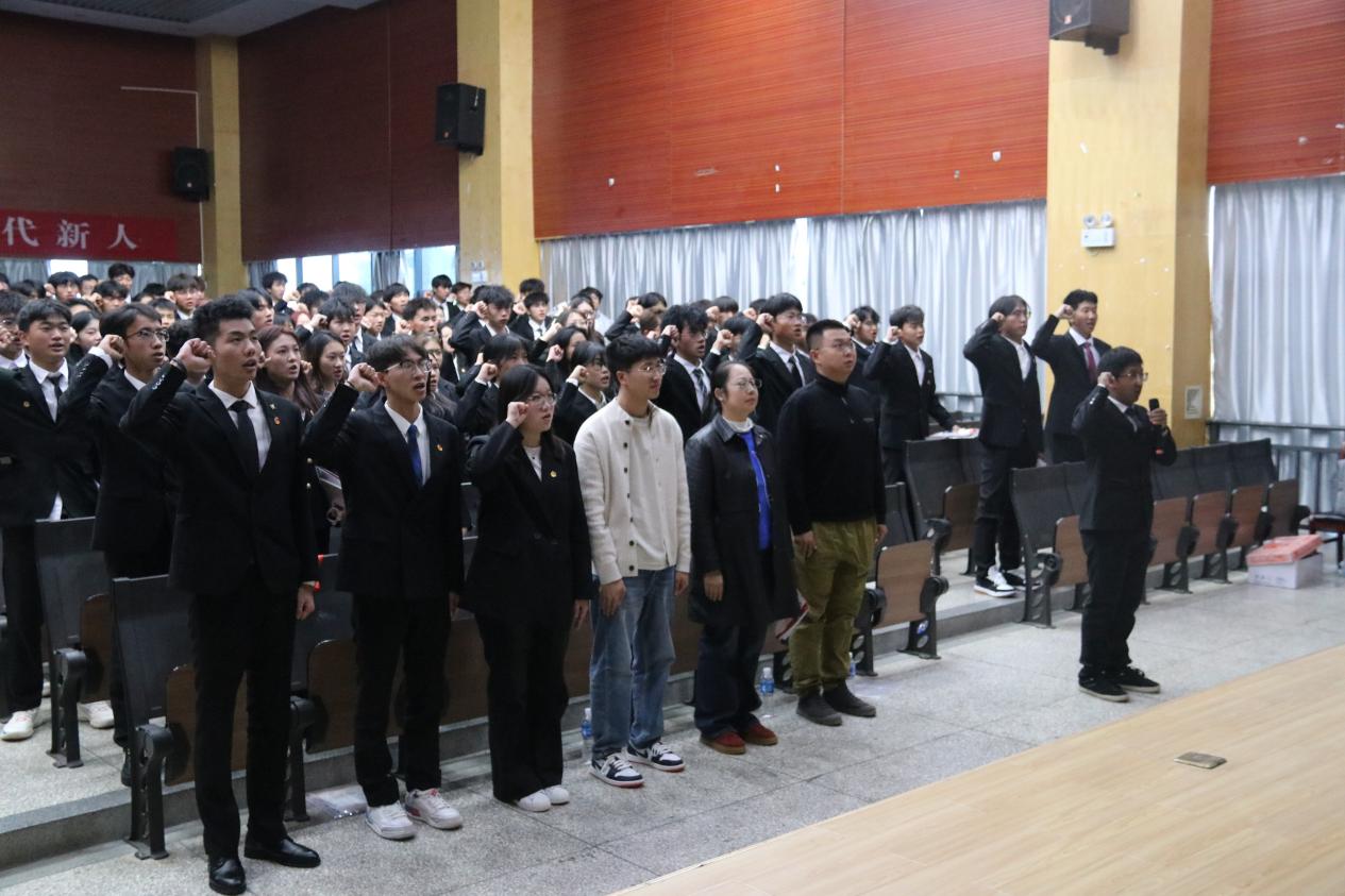 仪式伊始,全体学员起立面向团旗庄严宣誓、重温入团初心,随后齐唱团歌,青春旋律中尽显青年热忱。