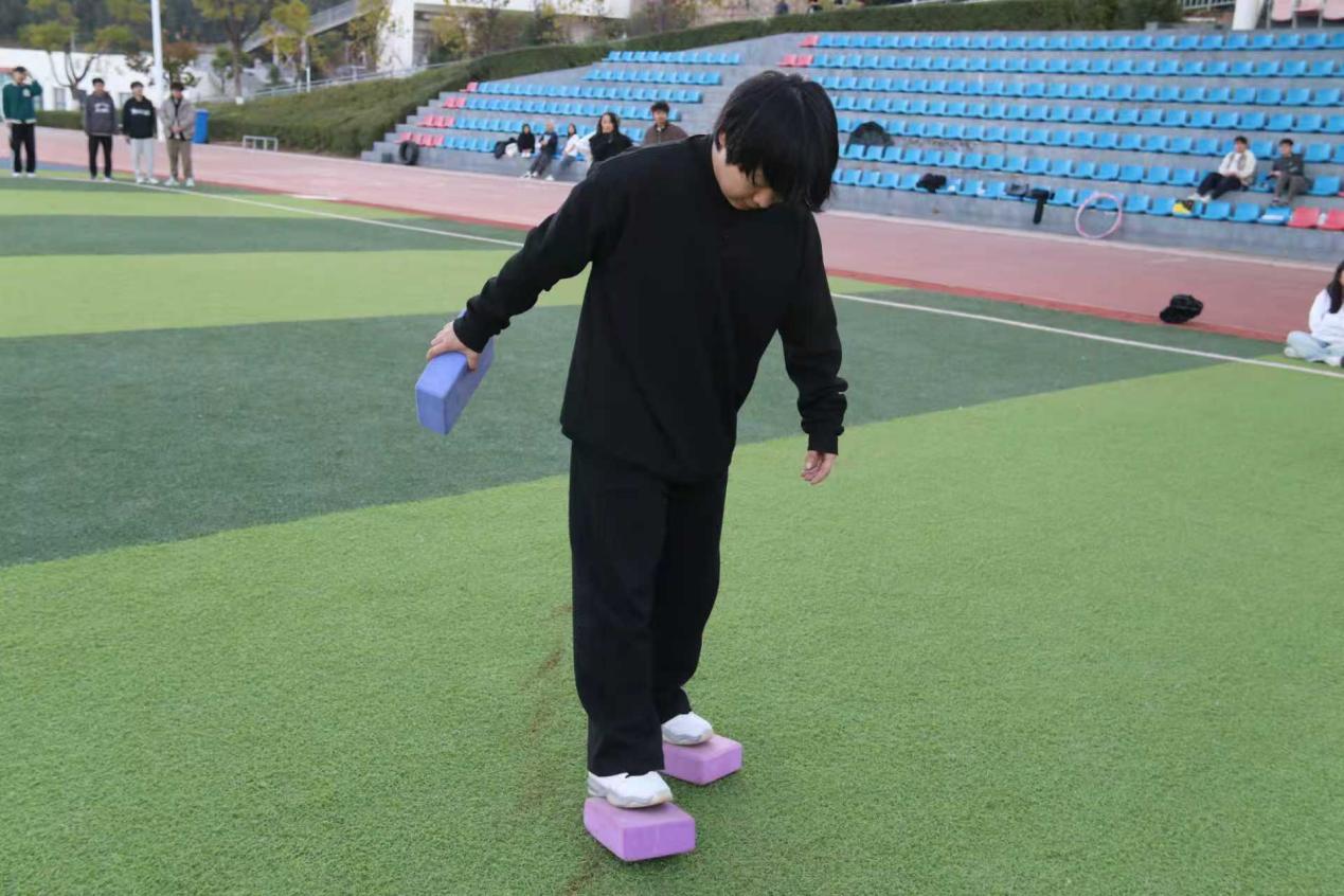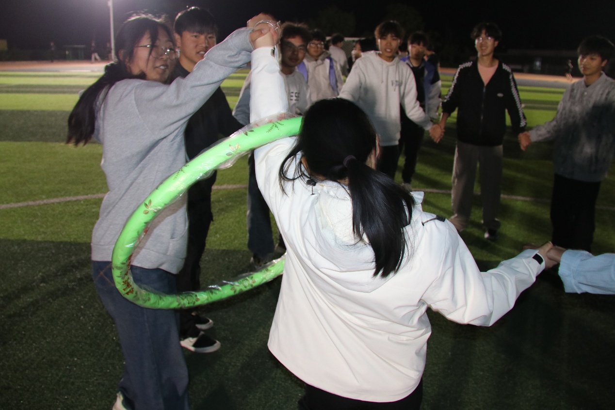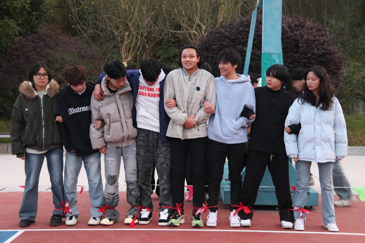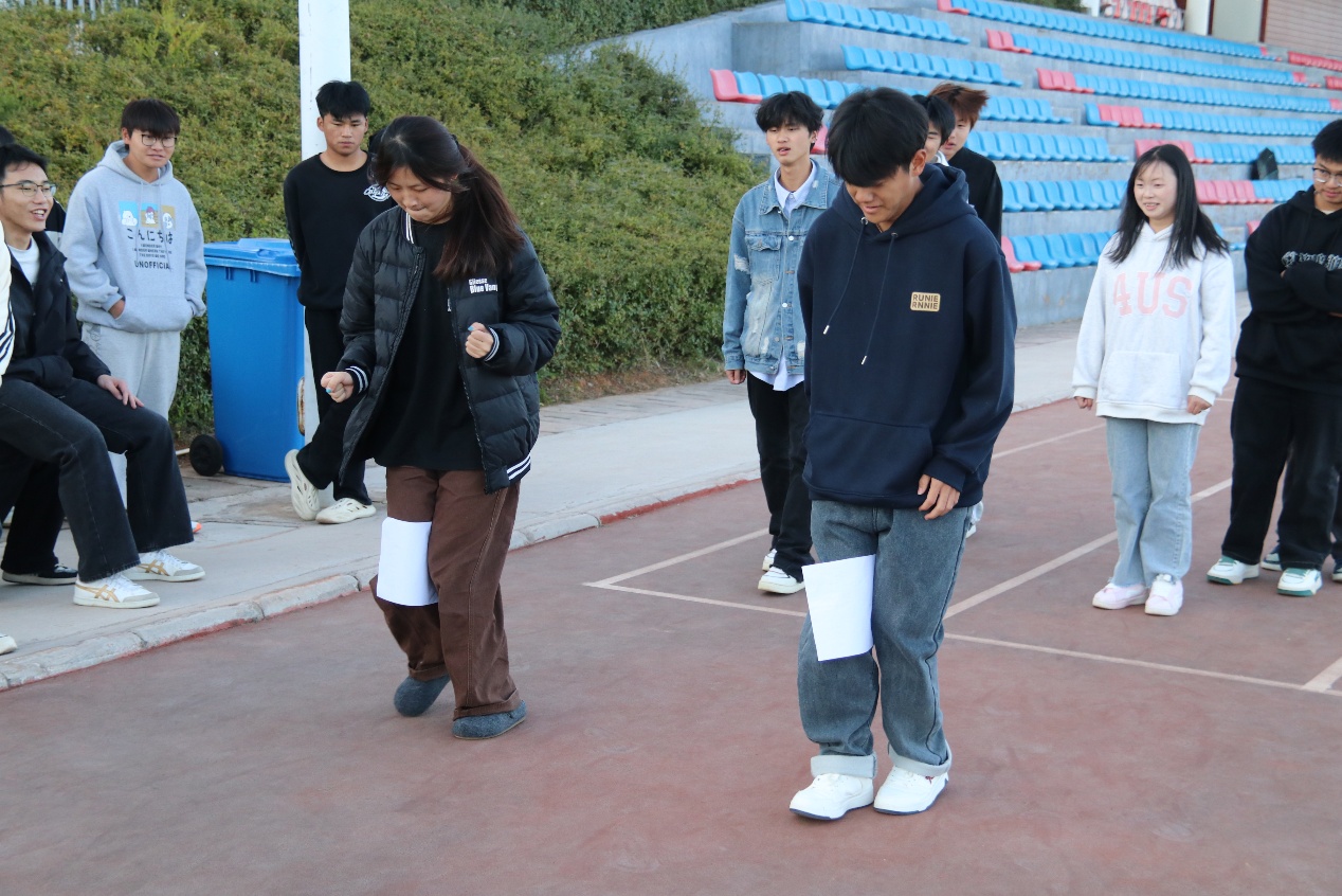 摸石头过河三块砖,一双脚,稳为先。脚踩“石头”步步挪,沉着谨慎,顺利闯过难关!穿越呼啦圈一个呼啦圈,一队人,巧配合。手拉手钻胯传圈,行云流水,协作完成挑战!夹纸竞走一张纸,两只手,一颗心。夹紧纸片稳步行,屏气凝神,携手冲向胜利终点!颁奖聚光灯下,奖杯闪耀,获奖代表依次登台,全场掌声经久不息!