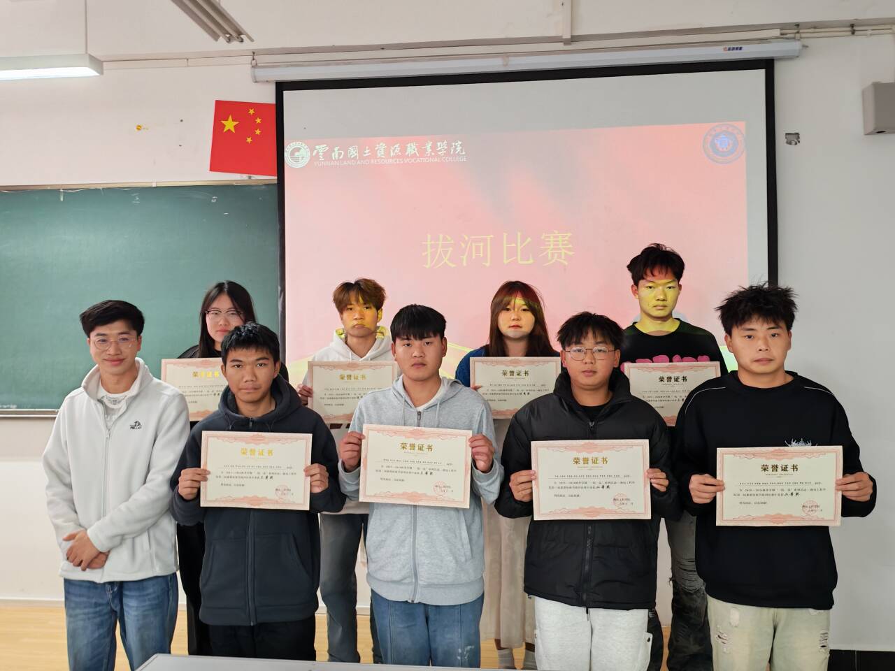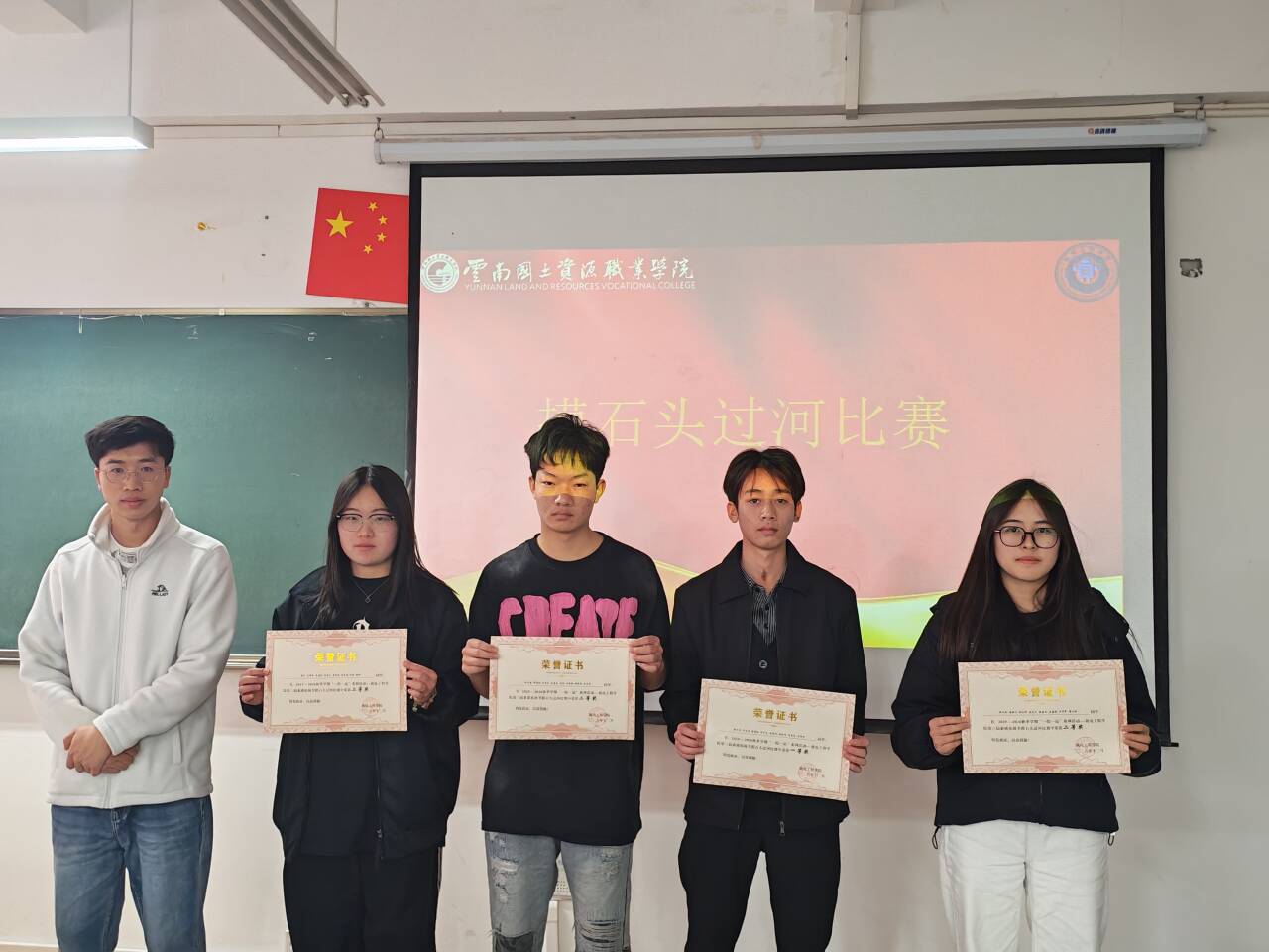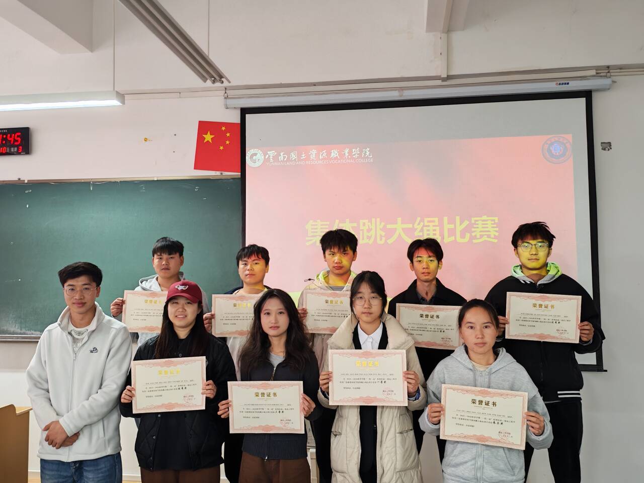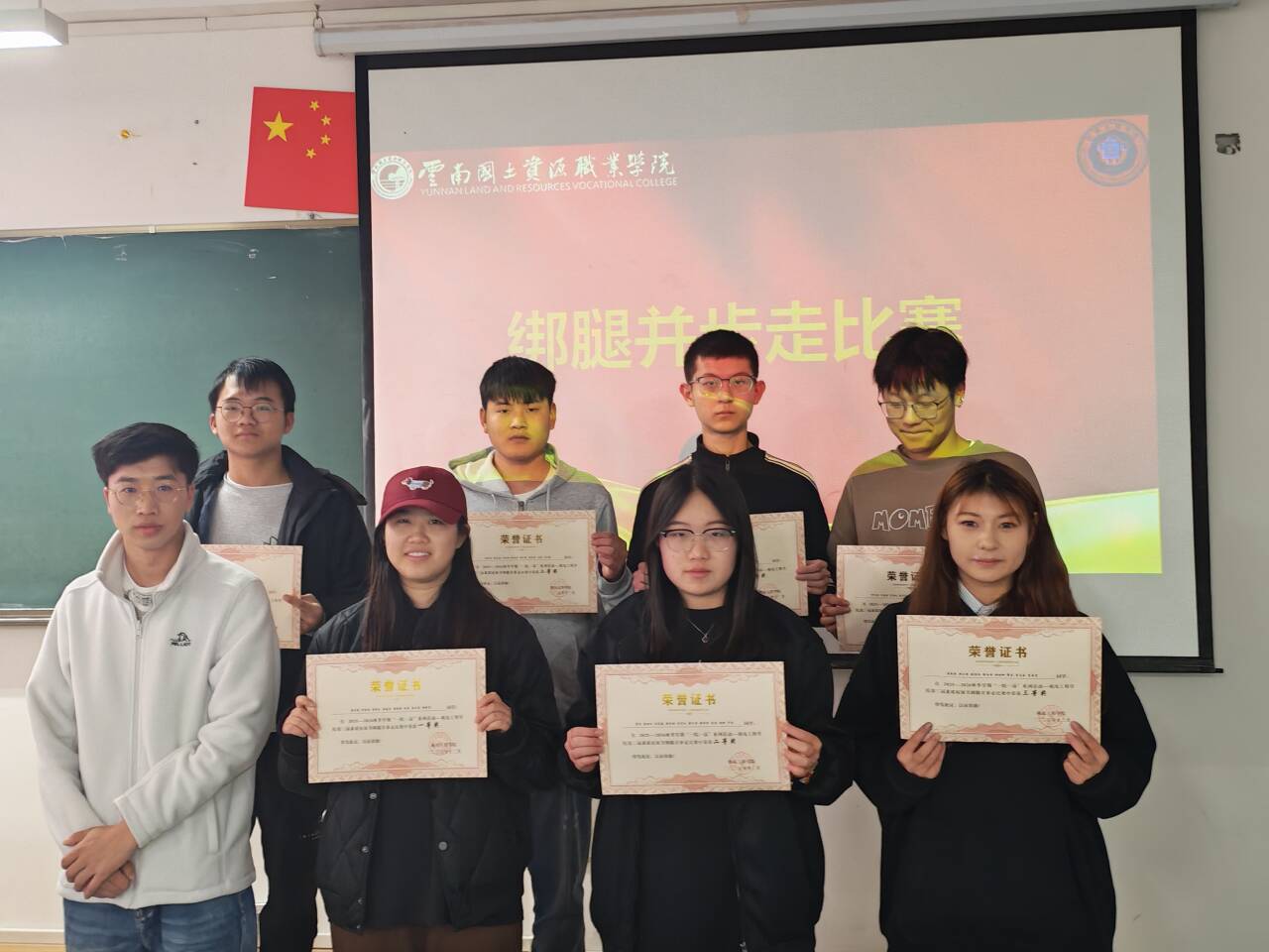 摸石头过河三块砖,一双脚,稳为先。脚踩“石头”步步挪,沉着谨慎,顺利闯过难关!穿越呼啦圈一个呼啦圈,一队人,巧配合。手拉手钻胯传圈,行云流水,协作完成挑战!夹纸竞走一张纸,两只手,一颗心。夹紧纸片稳步行,屏气凝神,携手冲向胜利终点!颁奖聚光灯下,奖杯闪耀,获奖代表依次登台,全场掌声经久不息!
