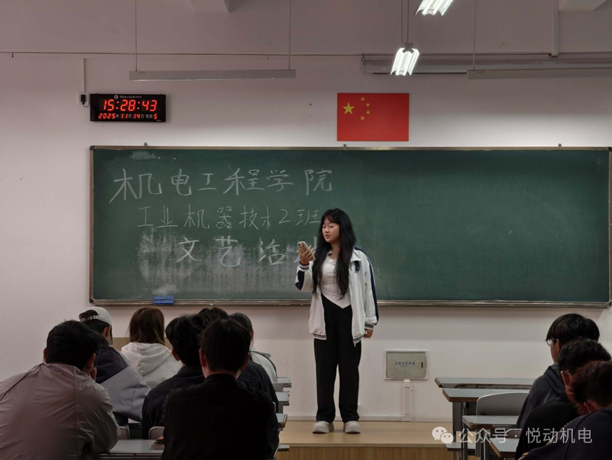 为丰富校园生活、增进同学情谊,11月14日下午,2025级工业机器人技术2班在笃行楼301成功举办了入学以来的首次文艺活动。本次活动由班级文体委员组织,全班同学积极参与,现场氛围热烈融洽。