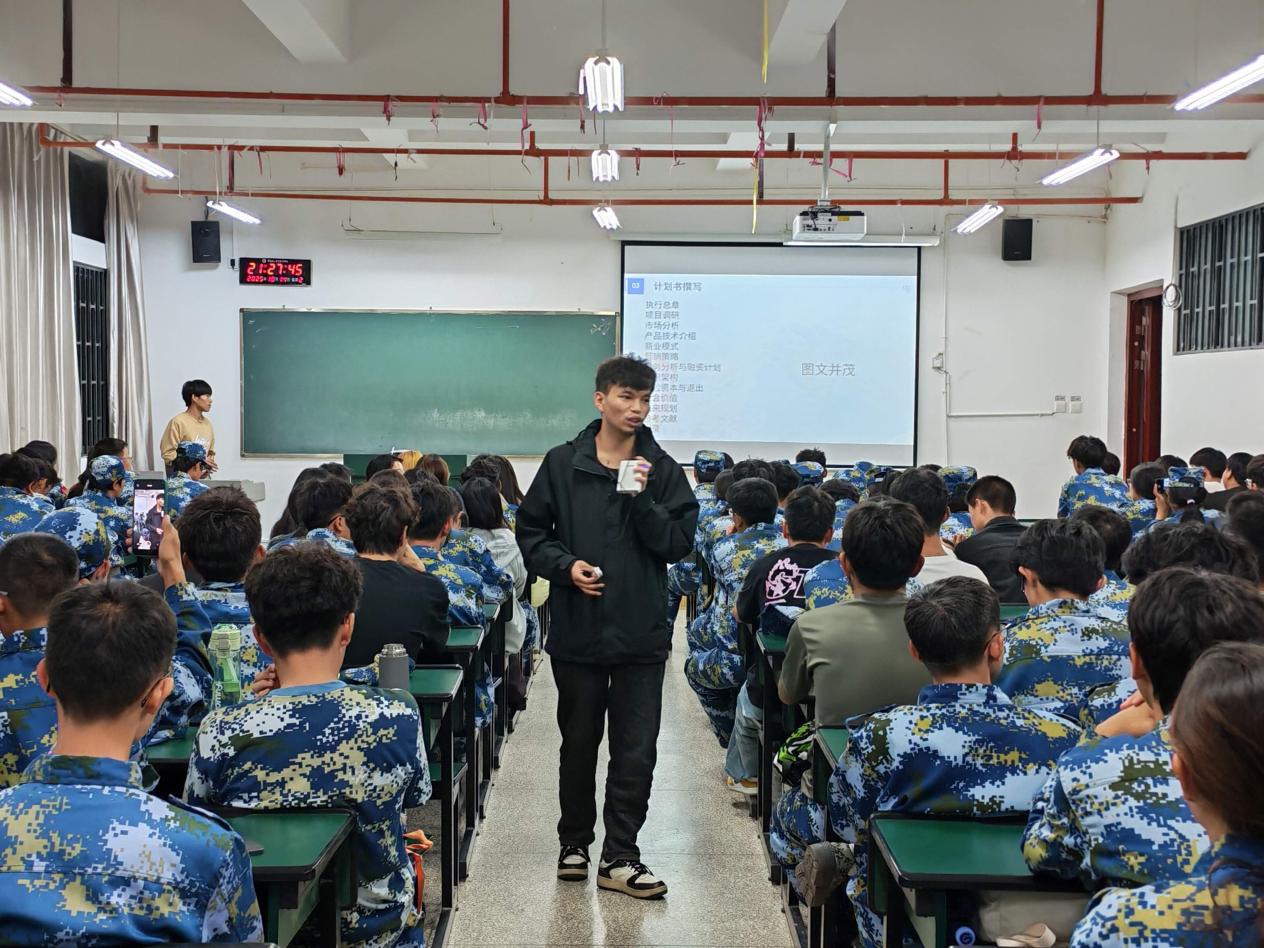 分享会首先明确了“大挑”与“小挑”的区别,讲解了如何从导师课题和生活痛点切入进行选题,并系统拆解了备赛全流程——从组队分工、PPT与计划书制作,到路演控时与团队协作,均进行了专业解读。现场还通过案例分析与视频展示,进一步加深了同学们的理解。